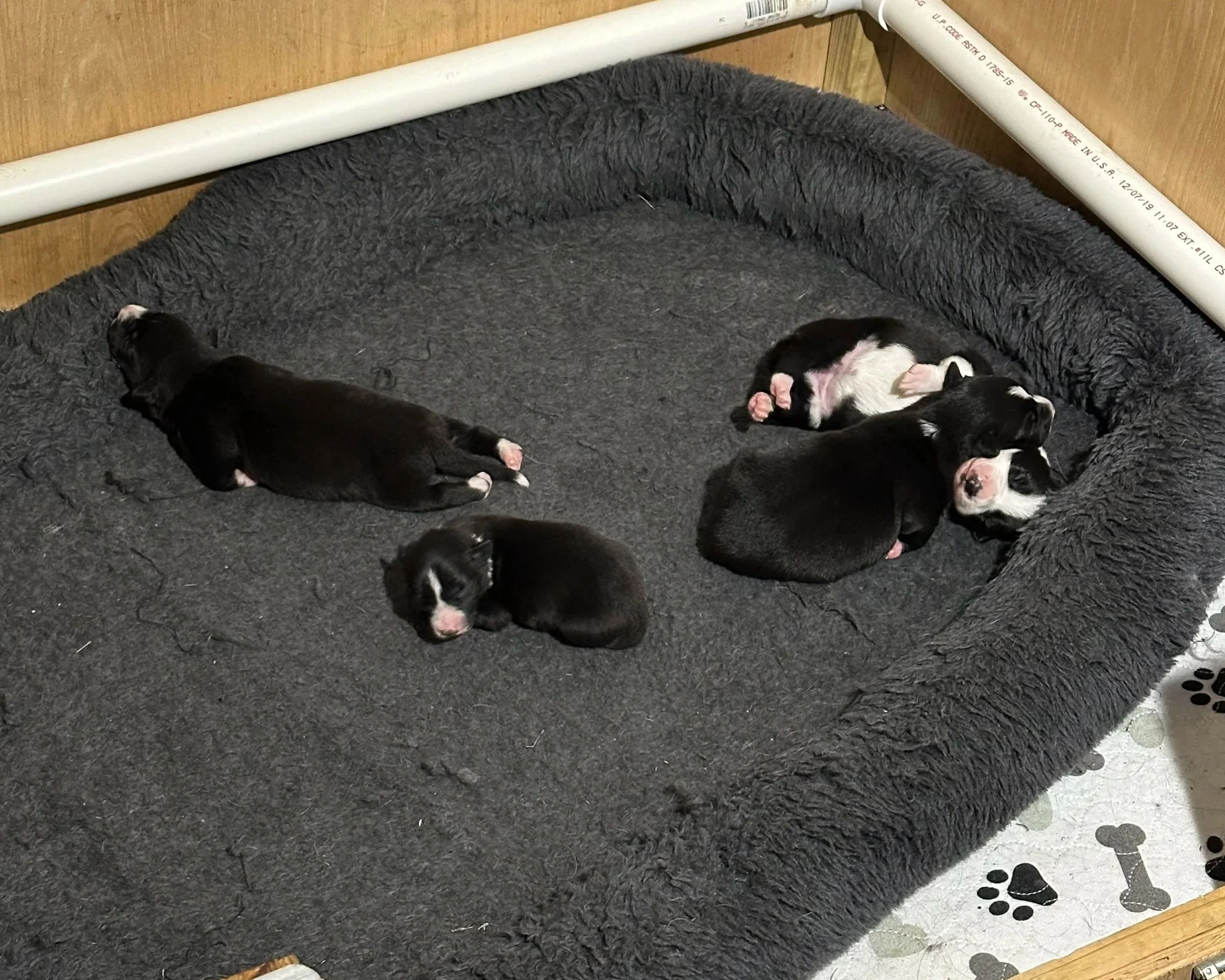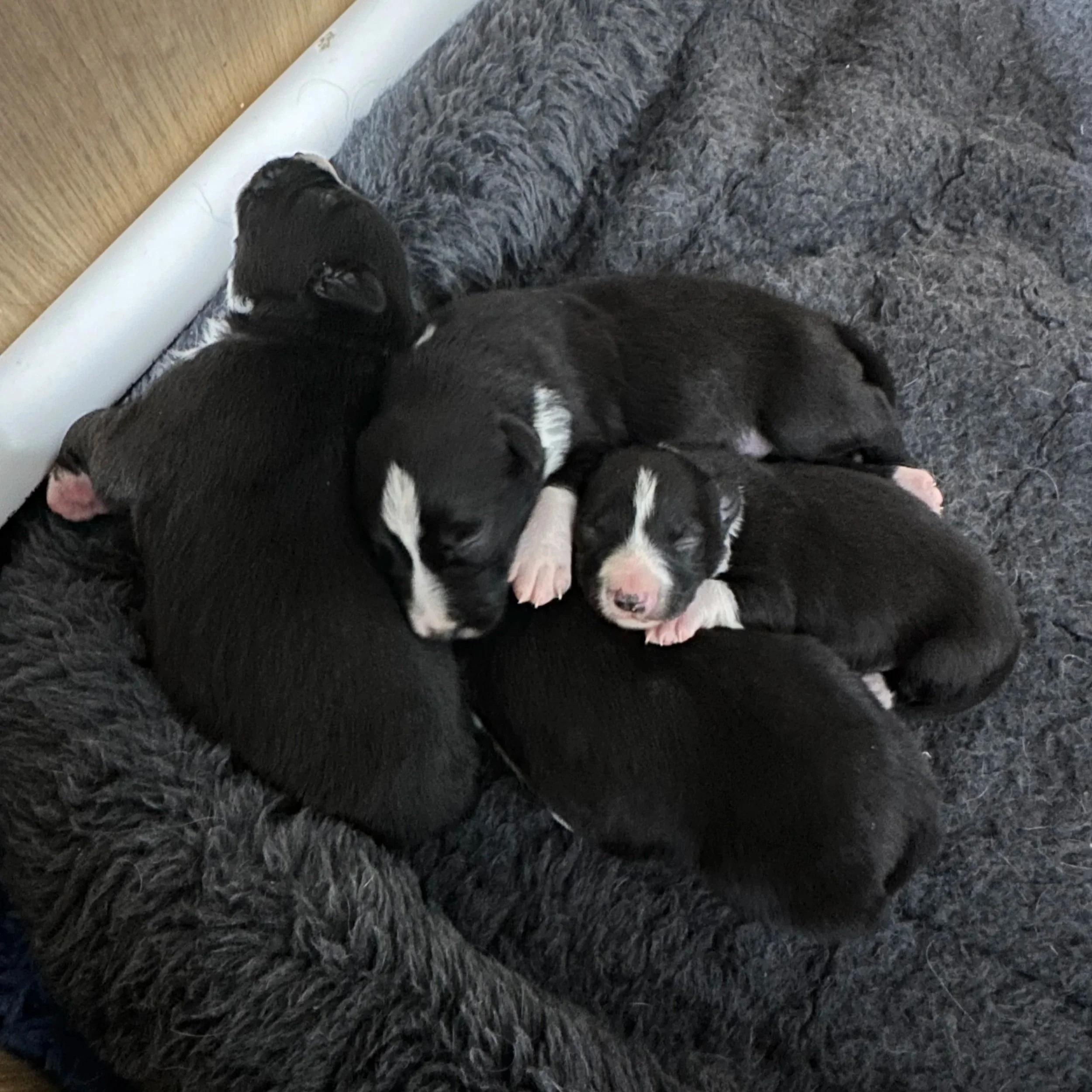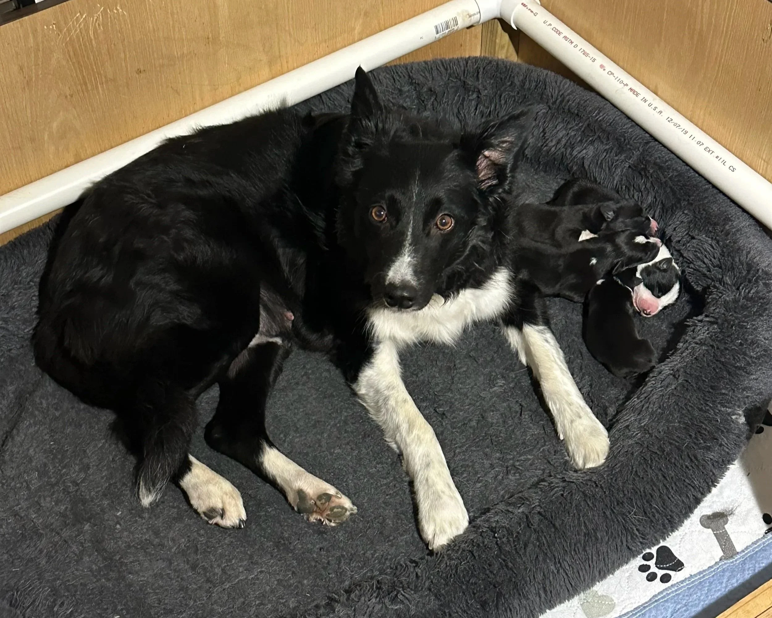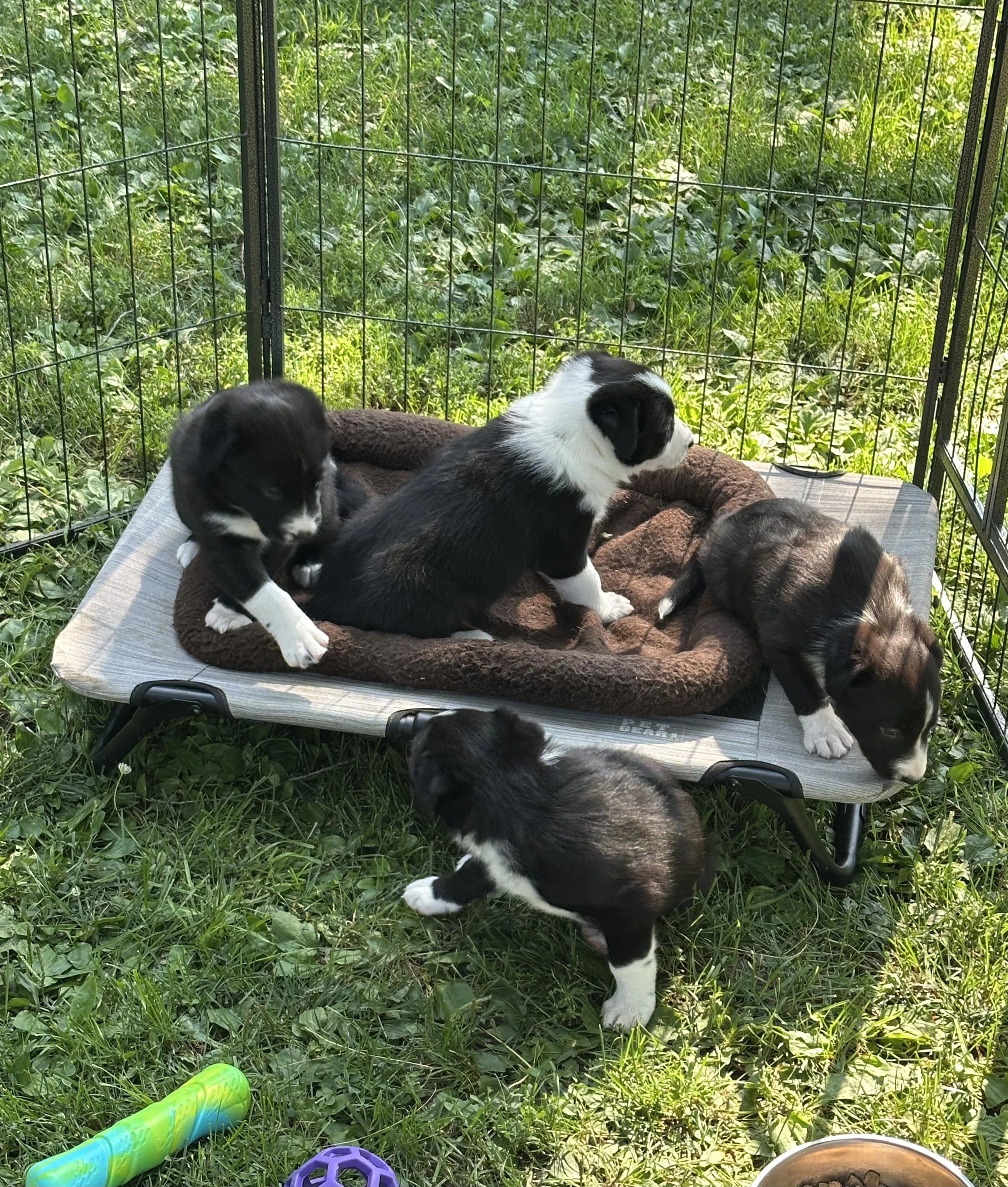 This is our second litter of pups arrived at Irish Woods Farm on June 5, 2025. Fly and Bran produced 4 beautiful puppies. 3 girls and 1 boy. Gwen, Lyn, Scout and Stuart. Puppies are now 9 months and have all started on sheep and showing very promising pups and have a great future.