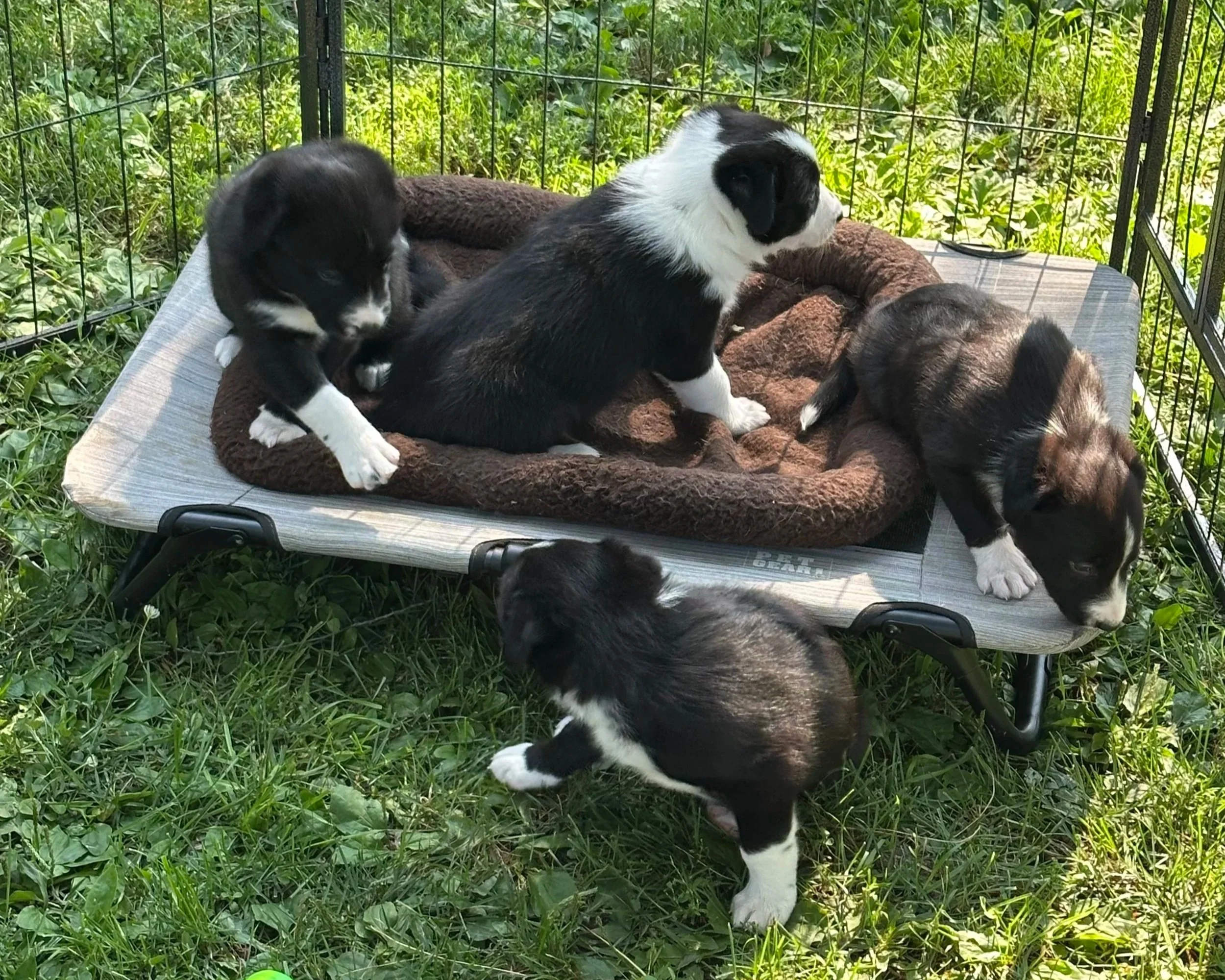 This is our second litter of pups arrived at Irish Woods Farm on June 5, 2025. Fly and Bran produced 4 beautiful puppies. 3 girls and 1 boy. Gwen, Lyn, Scout and Stuart. Puppies are now 5 months and will start going on sheep soon!