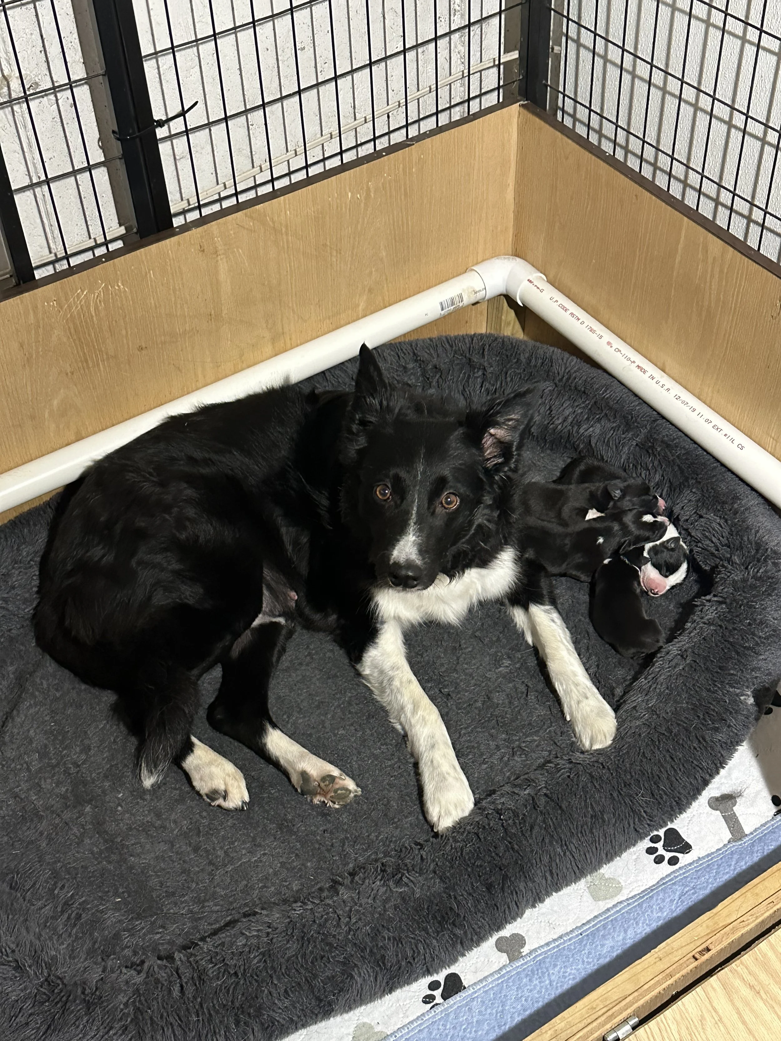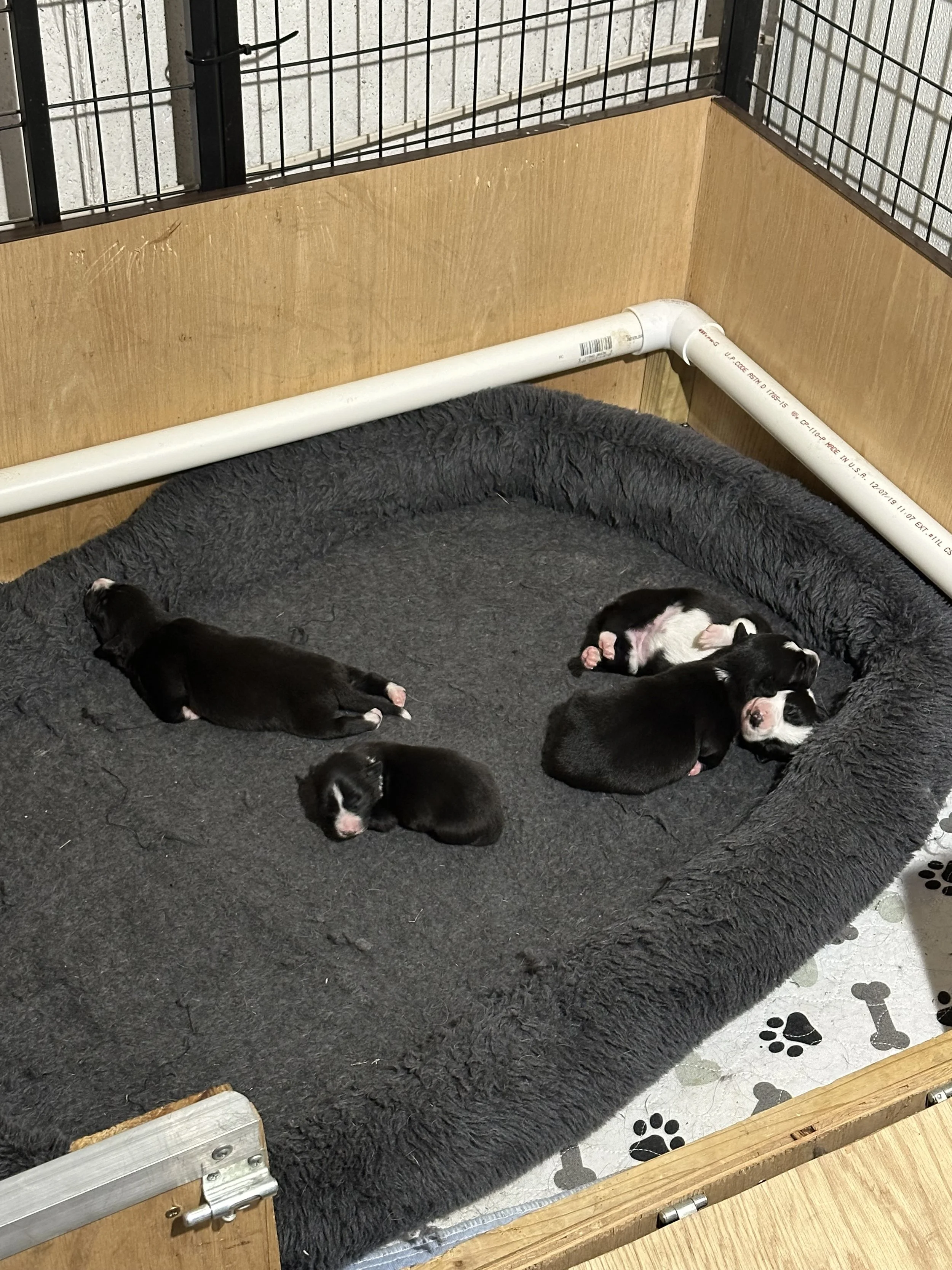 This is our second litter of pups arrived at Irish Woods Farm on June 5, 2025. Fly and Bran produced 4 beautiful puppies. 3 girls and 1 boy. Gwen, Lyn, Scout and Stuart. Puppies are now 5 months old and will start going to sheep soon!